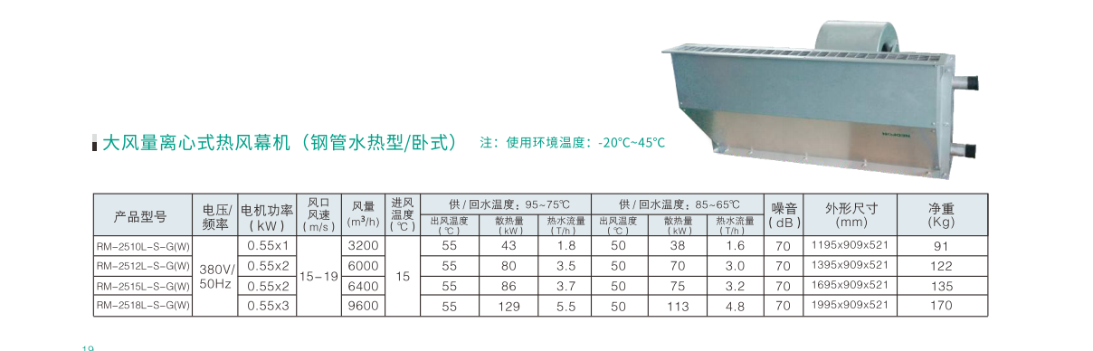 绿岛风大风量离心式热风幕机(钢管水热型/卧式)